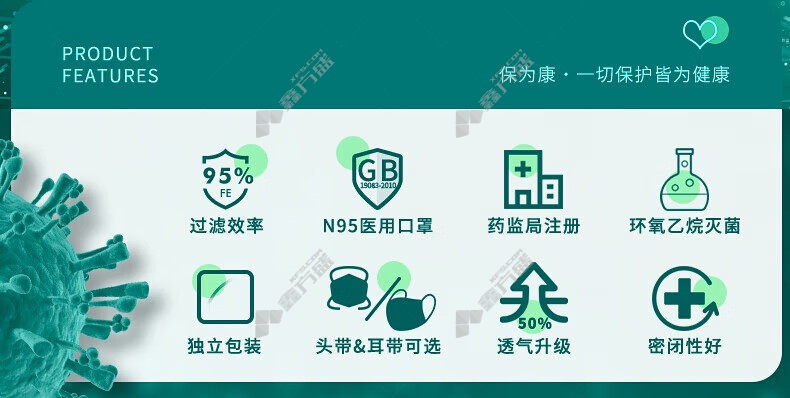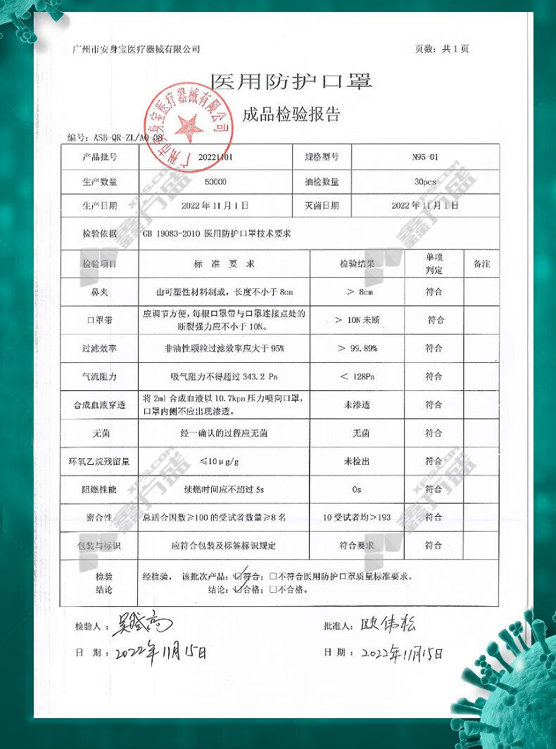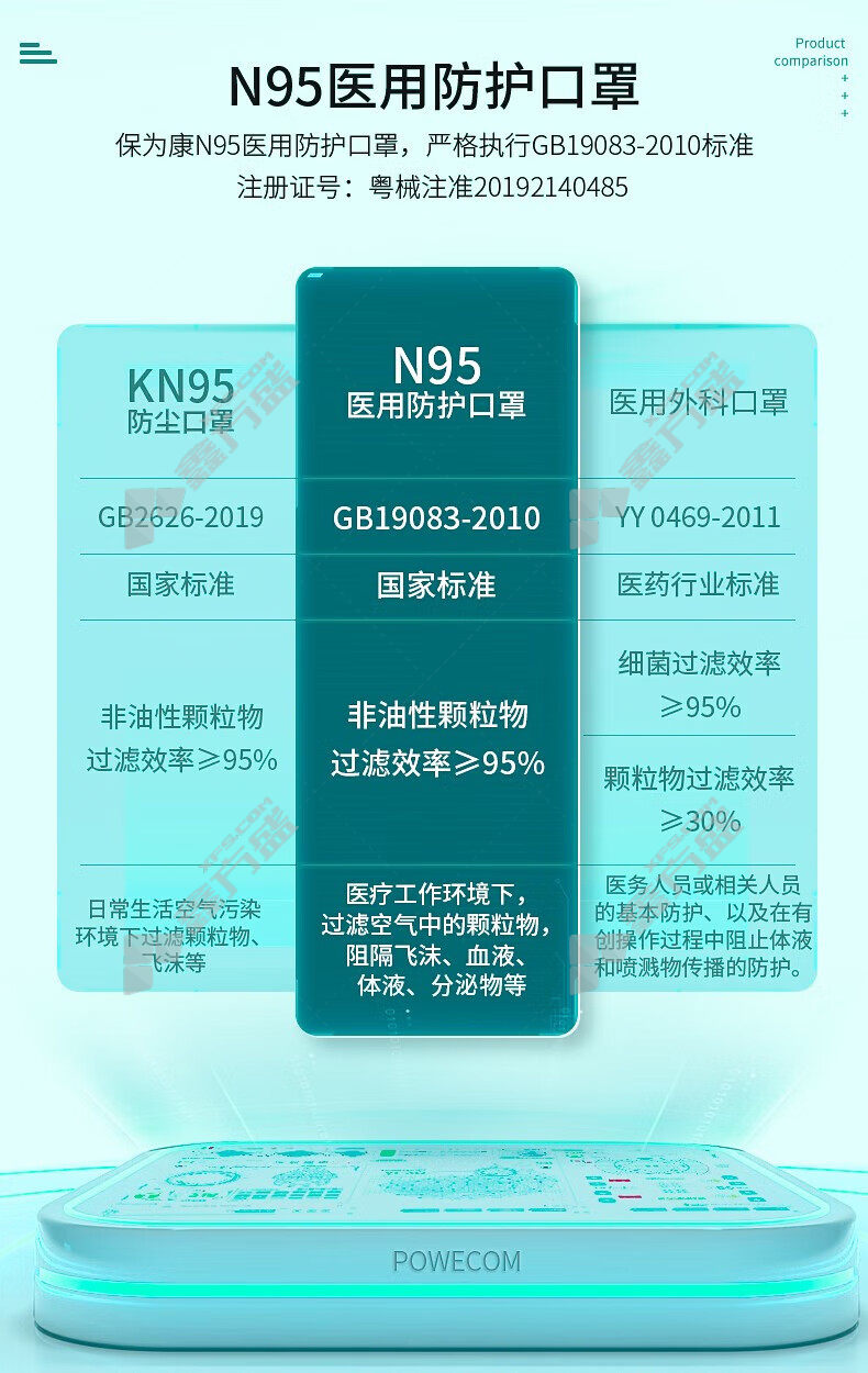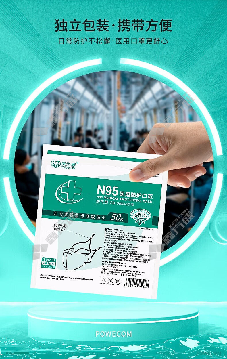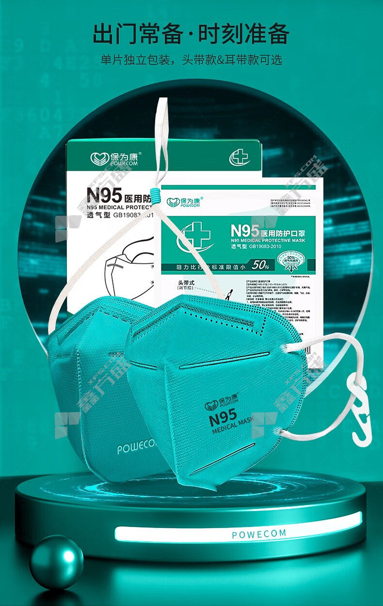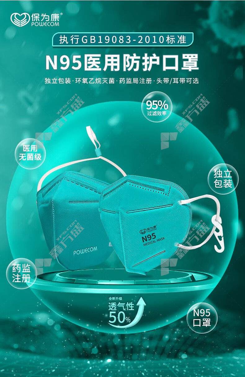 baoweikang adult sterilized disposable independent packaging N95 medical protective mask ear strap style 3 d three-dimensional without specifications