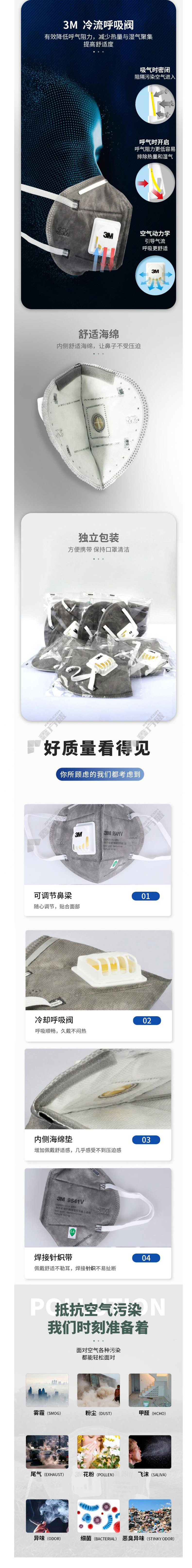 3M 9541V ear-loop activated carbon mask with valve gray ear-worn type KN95 no specifications