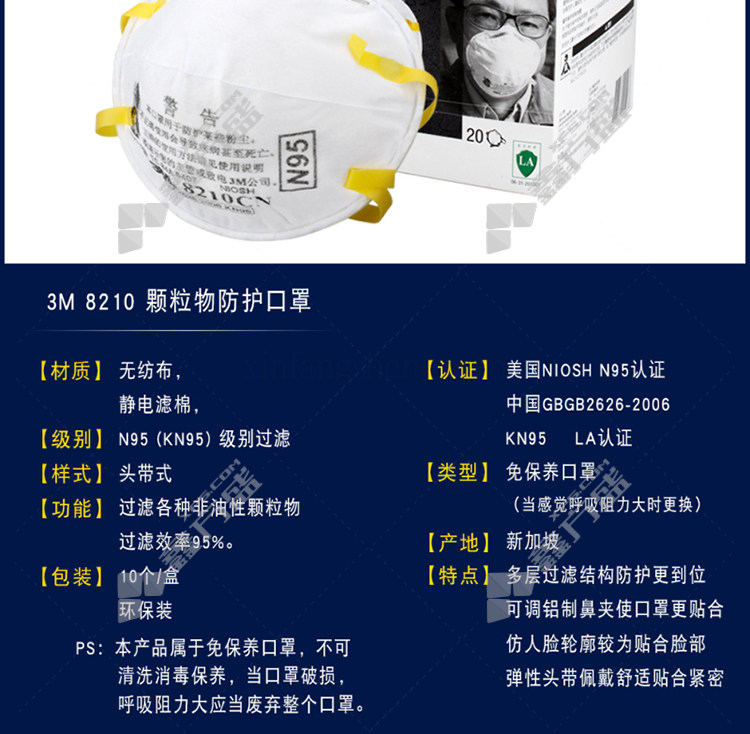 3M 8210CN dust mask white head-mounted N95 no specifications
