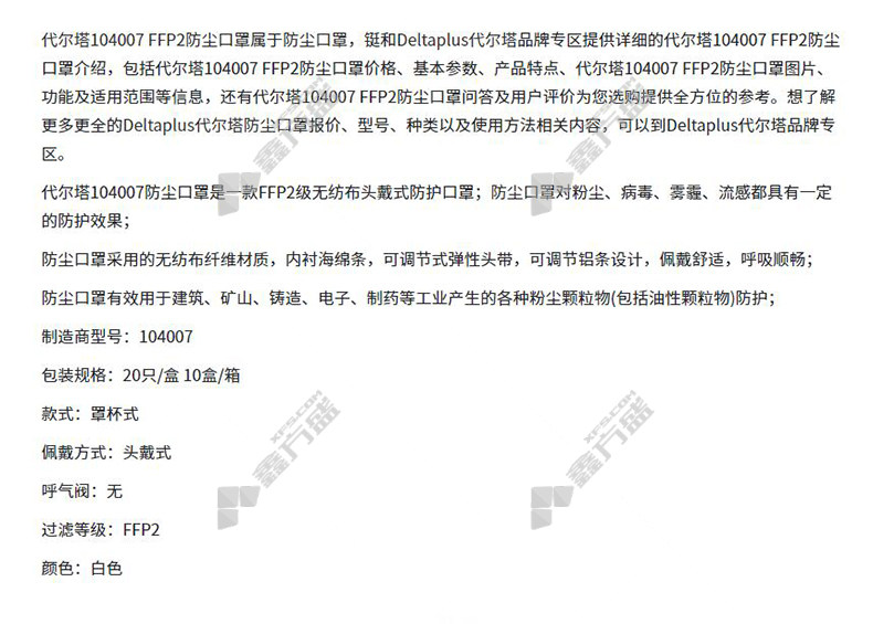 delta FFP2 cup mask 104007 no specifications