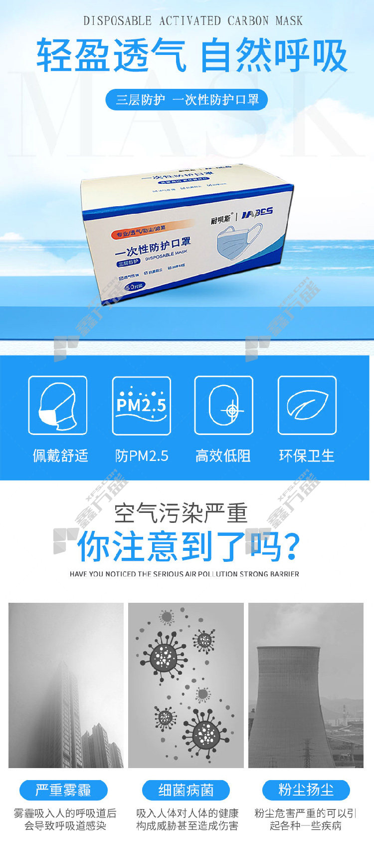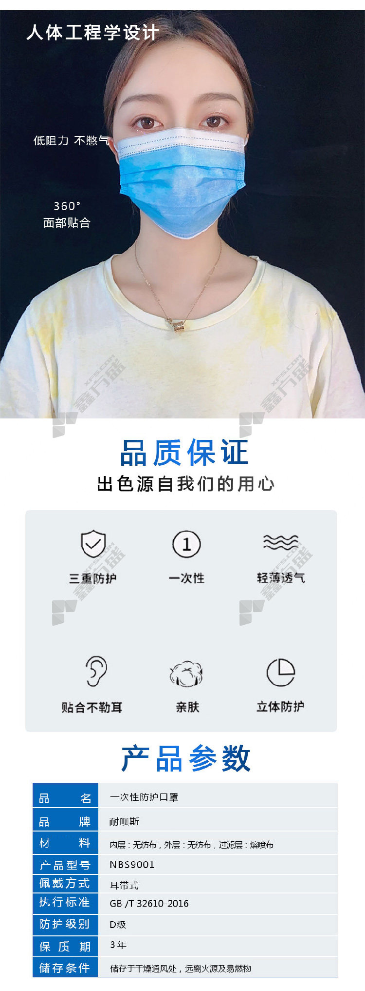 nice NBS9001 adult disposable protective mask NBS9001 white 50 pieces /box has no specifications