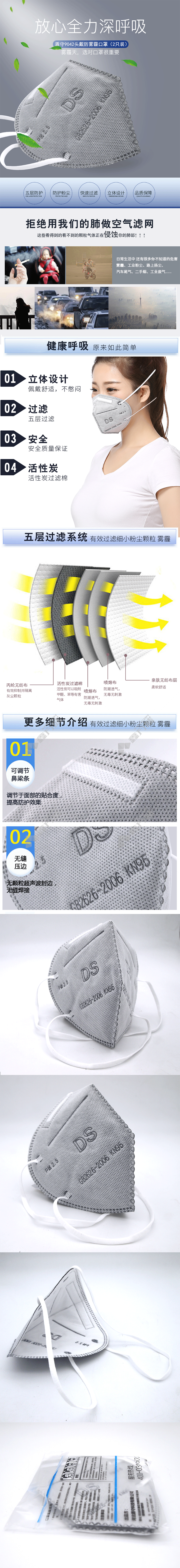 shield shou 9042 valveless activated carbon mask DS-025 gray headband KN95 no specifications