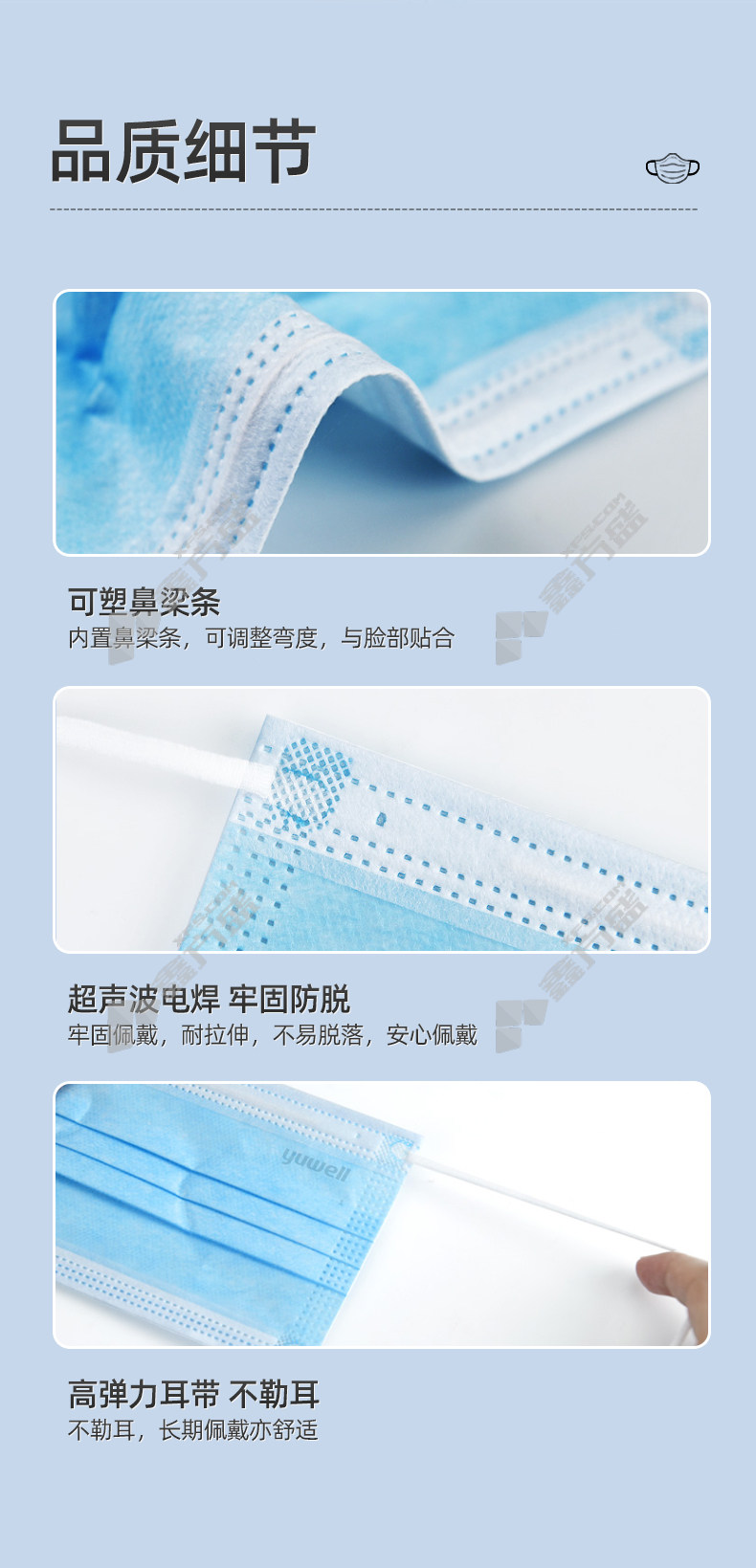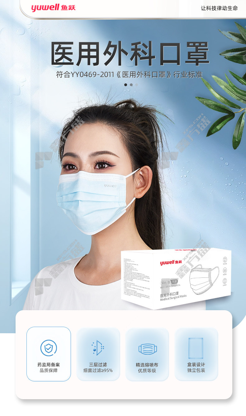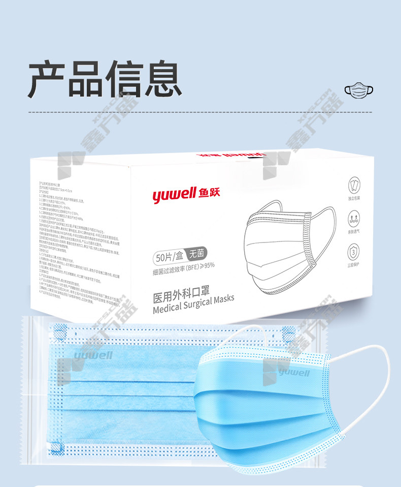 yuyue anti-bacterial droplet breathable three-layer protective disposable medical surgical mask sterilization grade blue ear-mounted no specifications