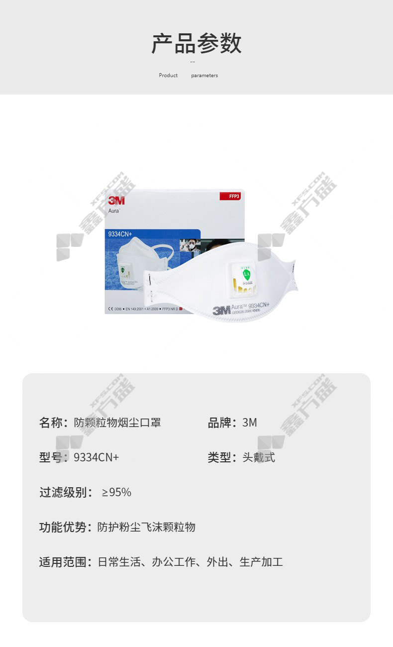3M 9334CN+ FFP3 foldable protective mask white head-mounted FFP3 no specifications