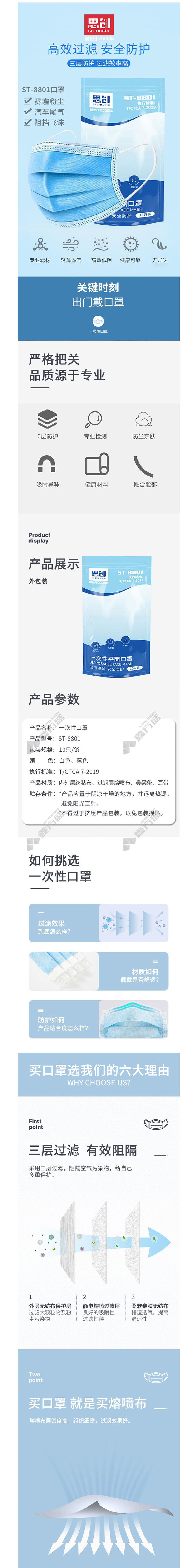 xtron ST-8801 disposable flat mask ST-8801 blue 10only /bag ST-8801/blue /10only /bag