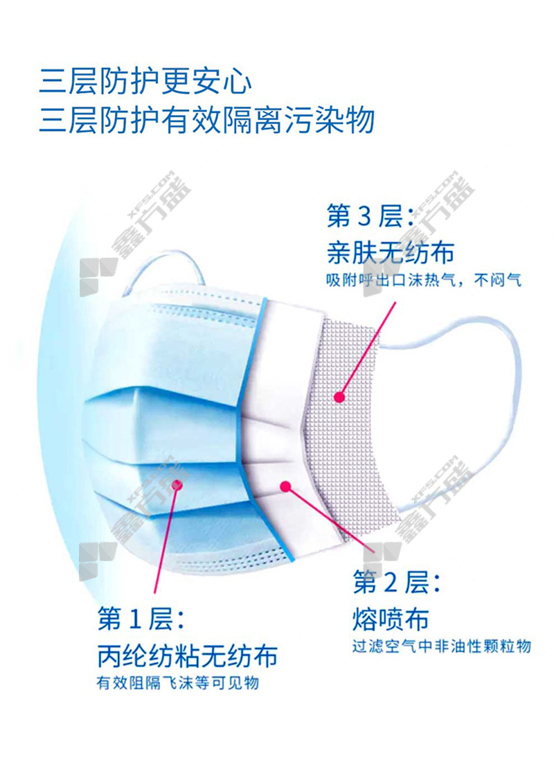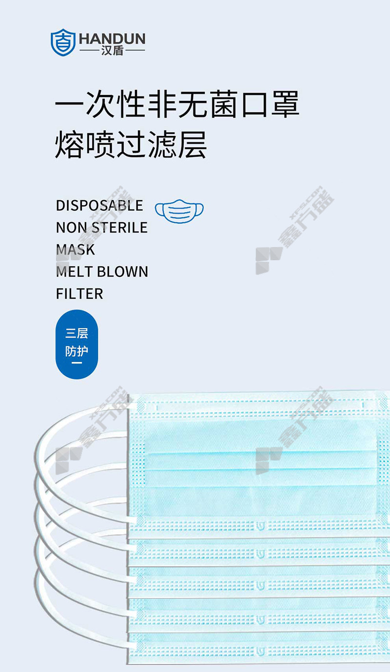 handun three-layer disposable medical mask sterilizing ear straps blue non-sterile /ear straps /blue
