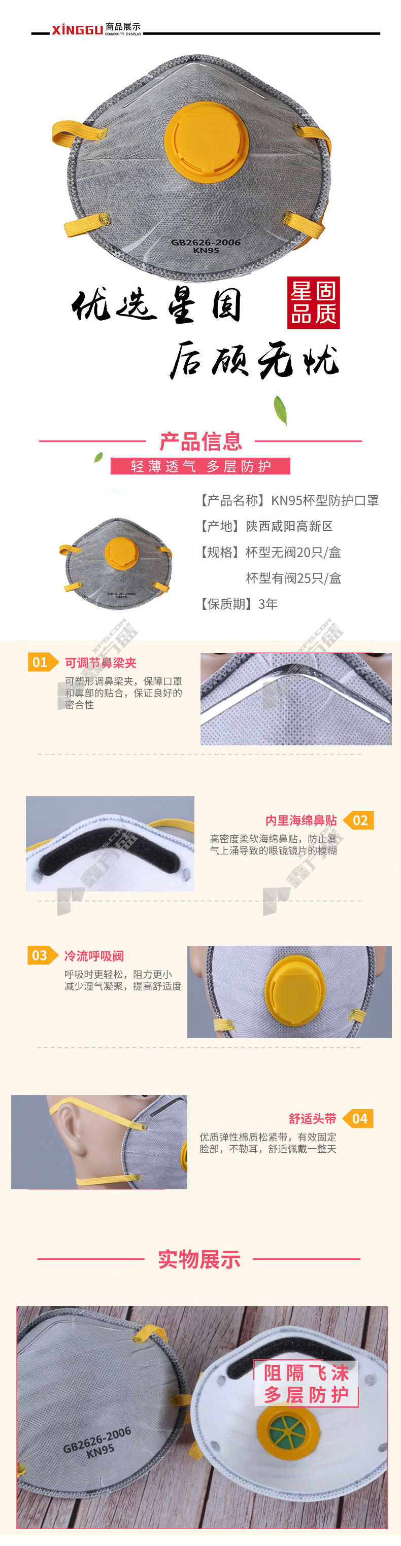 xinggu cup type activated carbon mask 1001012 XG7103CV wear on head KN95 no specifications
