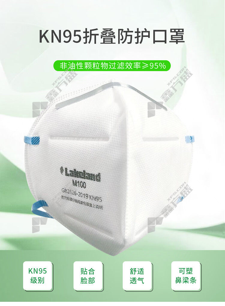 lakeland M100 KN95 foldable dust mask, head-mounted, independent, white, no specifications