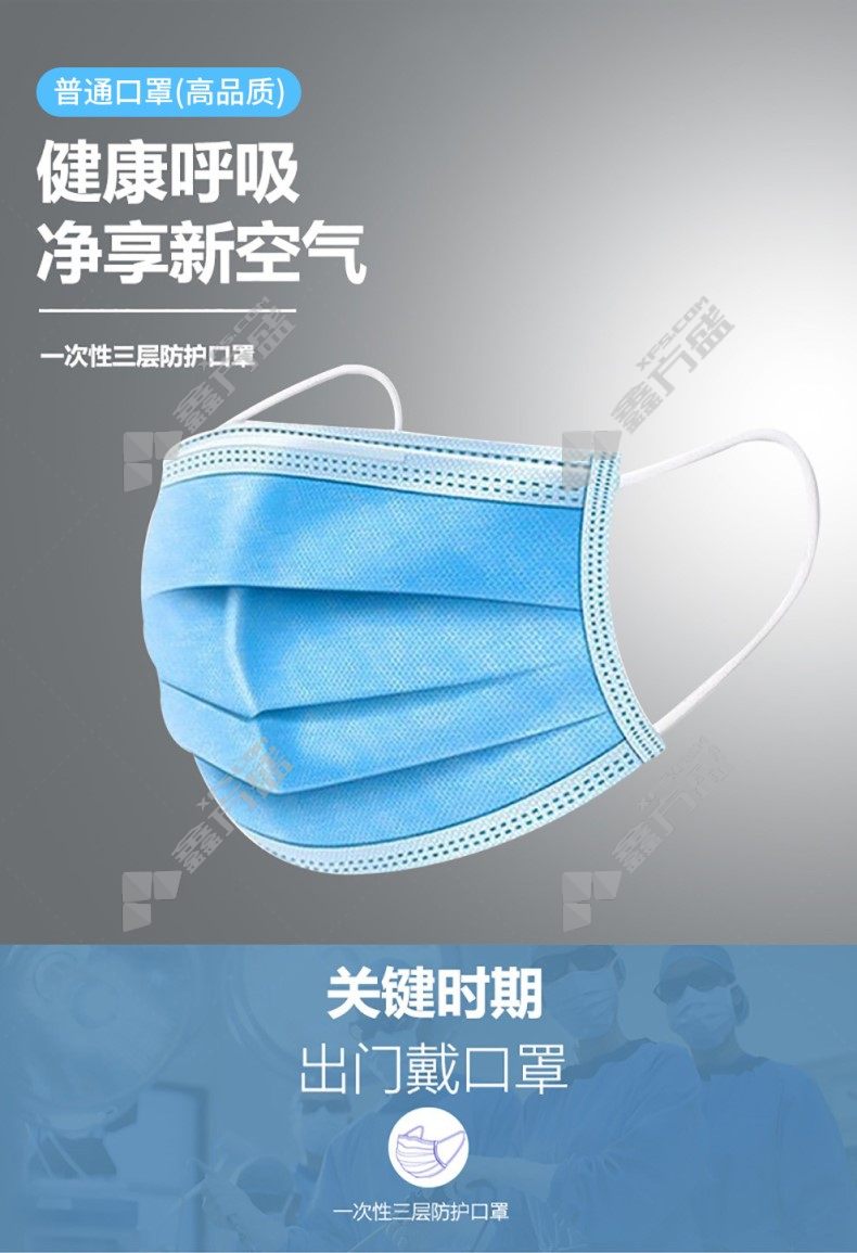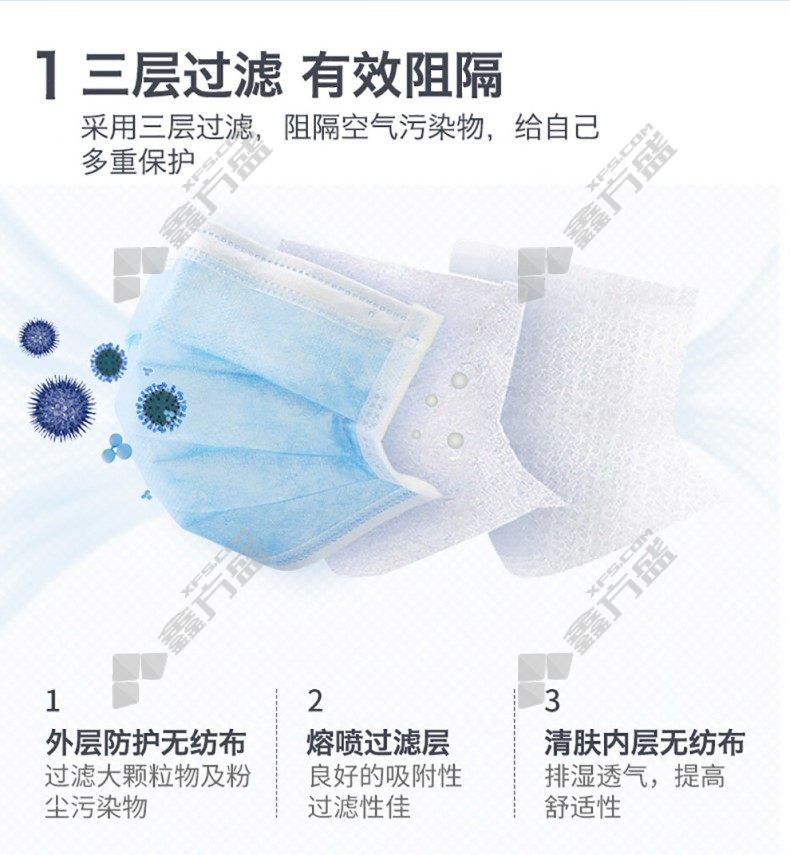 xingong ordinary ear-worn disposable three-layer mask melt-blown filter material non-woven blue 50 pieces /package has no specifications