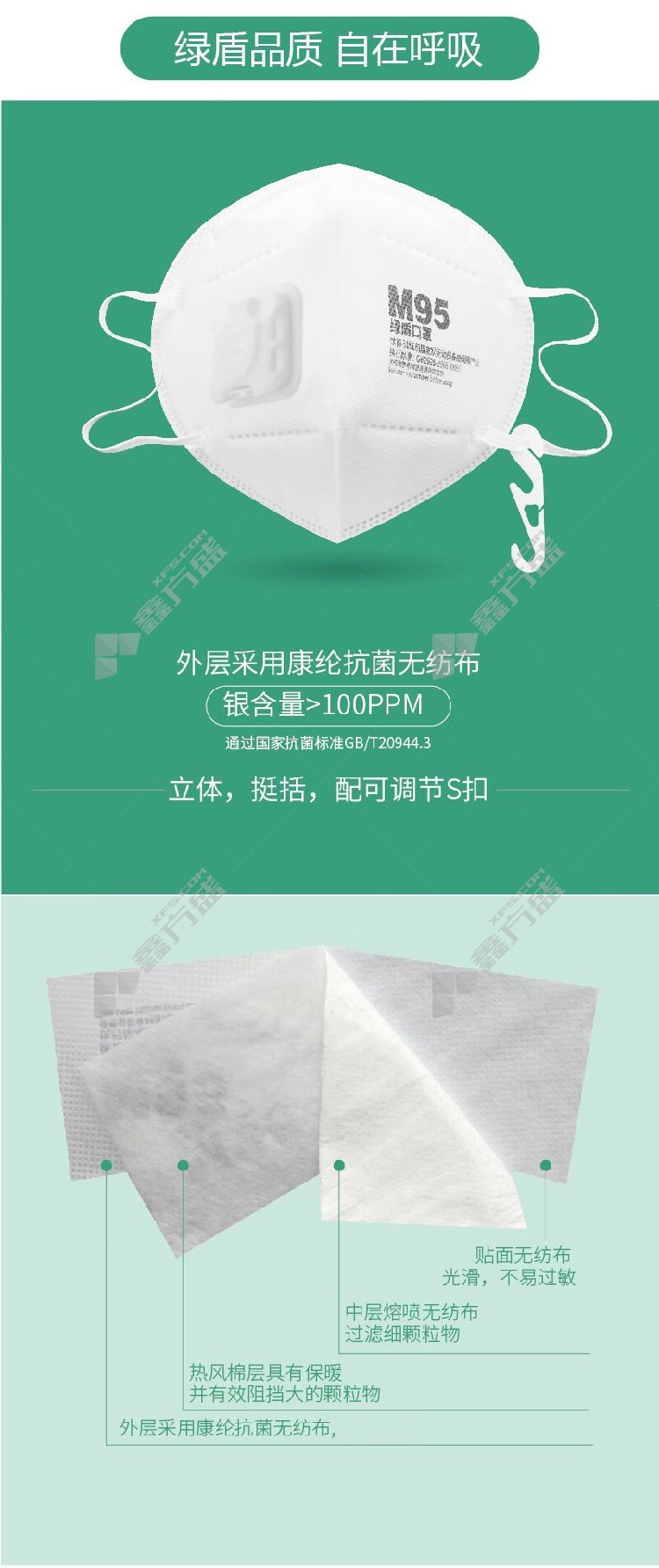 green shield M95 antibacterial protective mask 2005-1 multi-directional diversion breathing valve no specifications