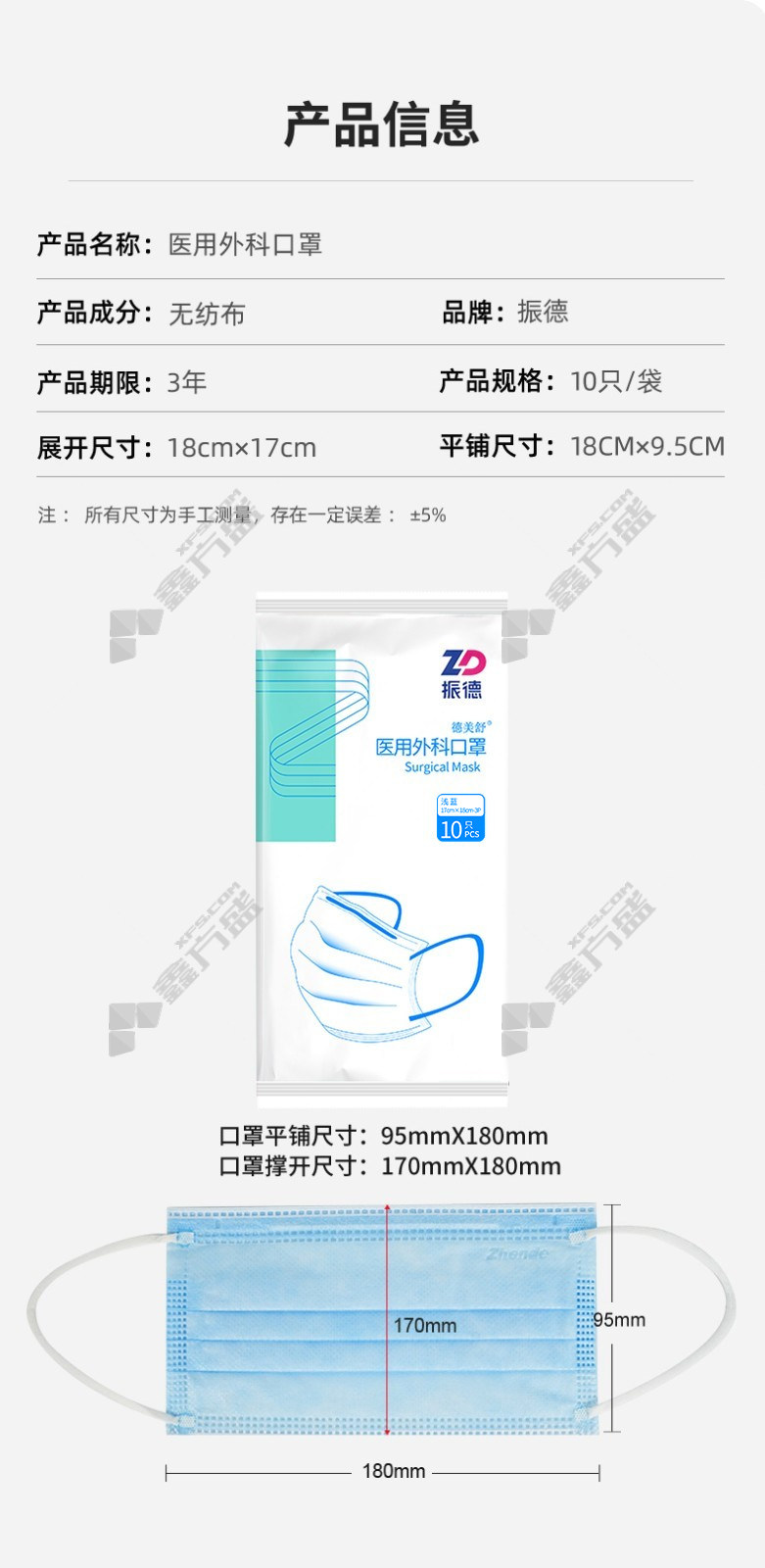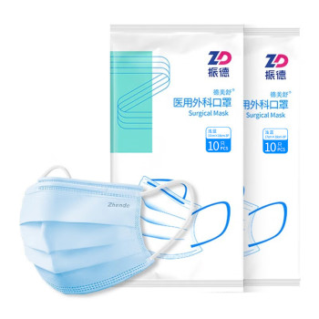 zhende disposable medical surgical masks non-sterile non-independent light blue 10 pieces /package light blue non-sterile non-independent light blue 10 pieces /pack light blue