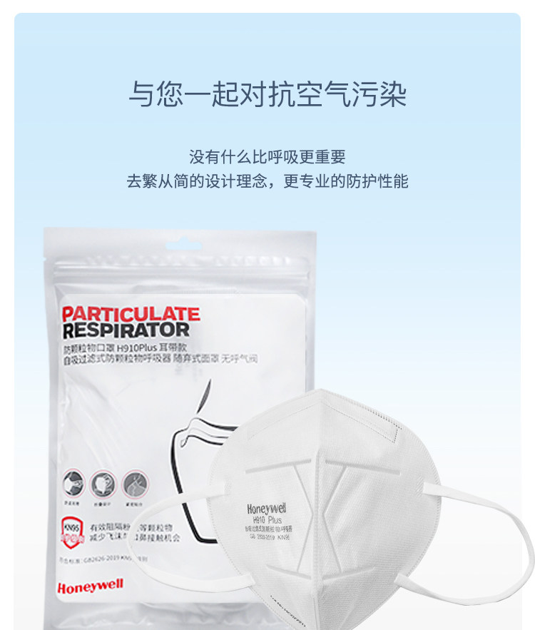 honeywell (HONEYWELL) anti-industrial dust ear straps foldable KN95 face mask H910Plus 10 only /bag (price unit: package ) white H910Plus no specifications
