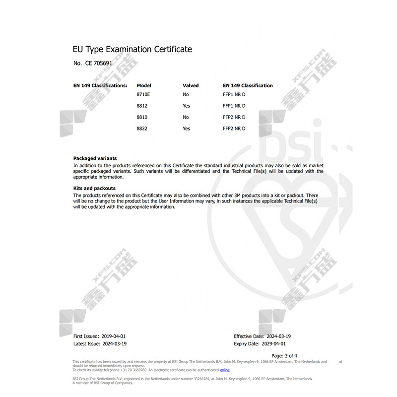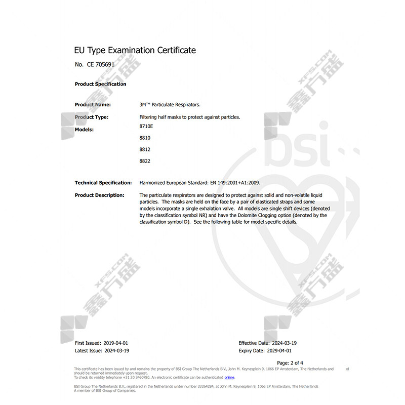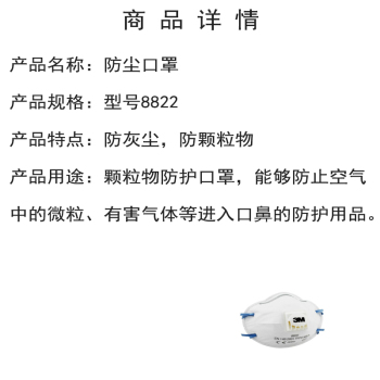 3M dust mask model 8822 no specifications