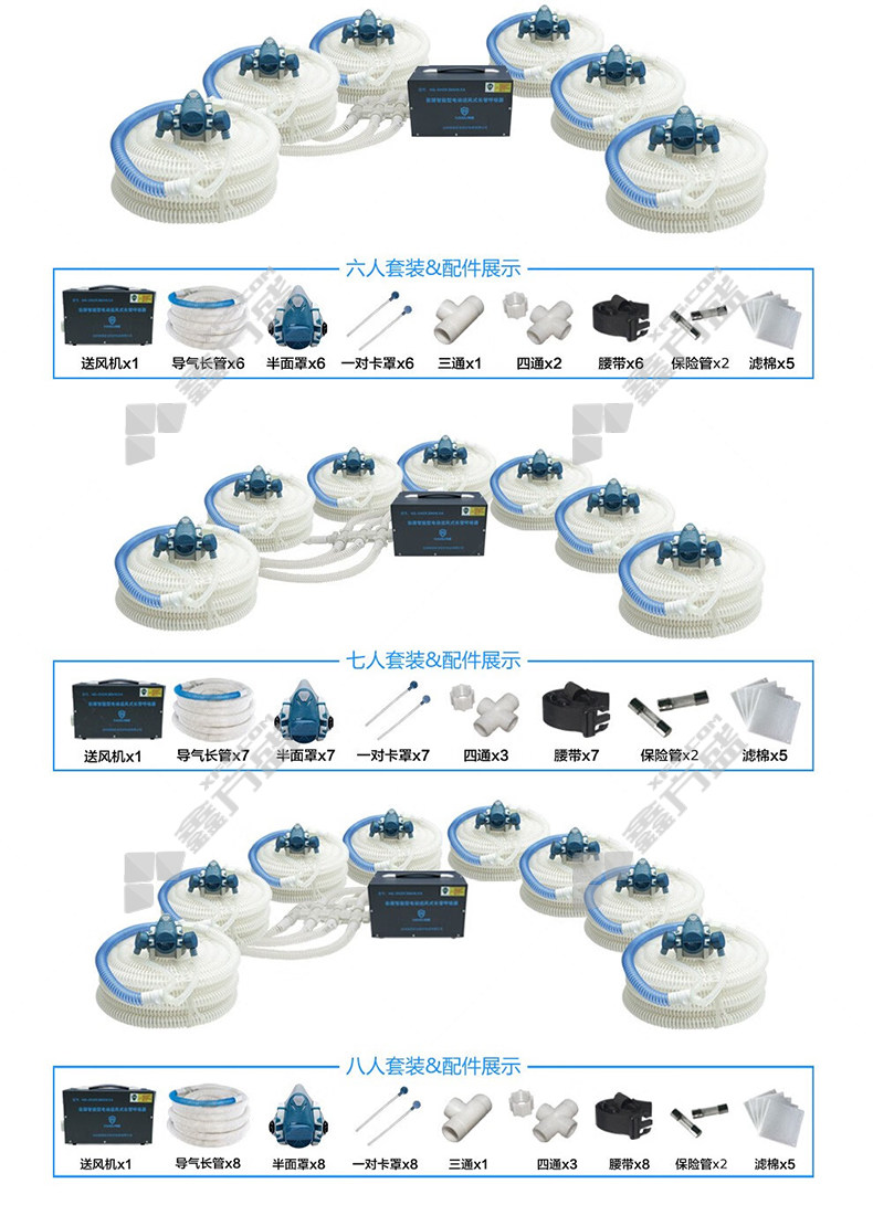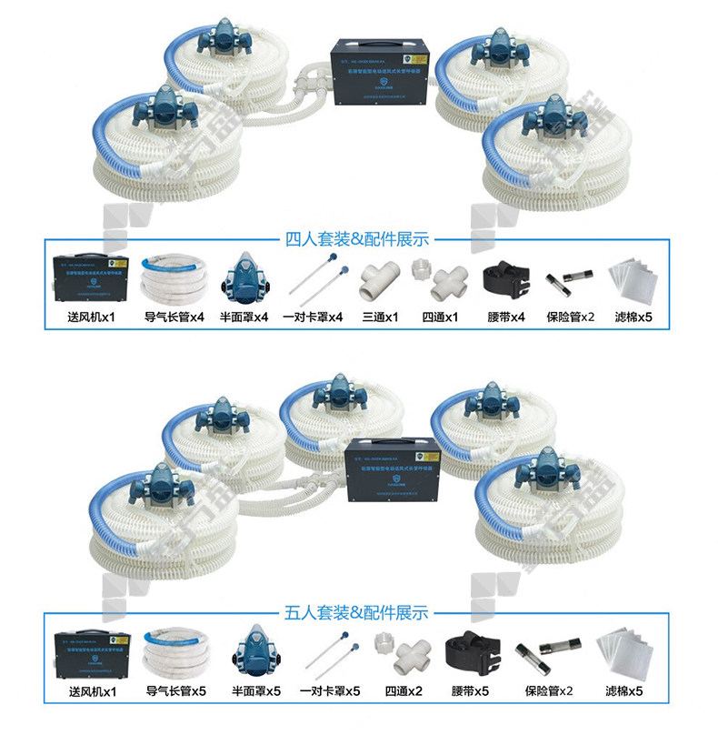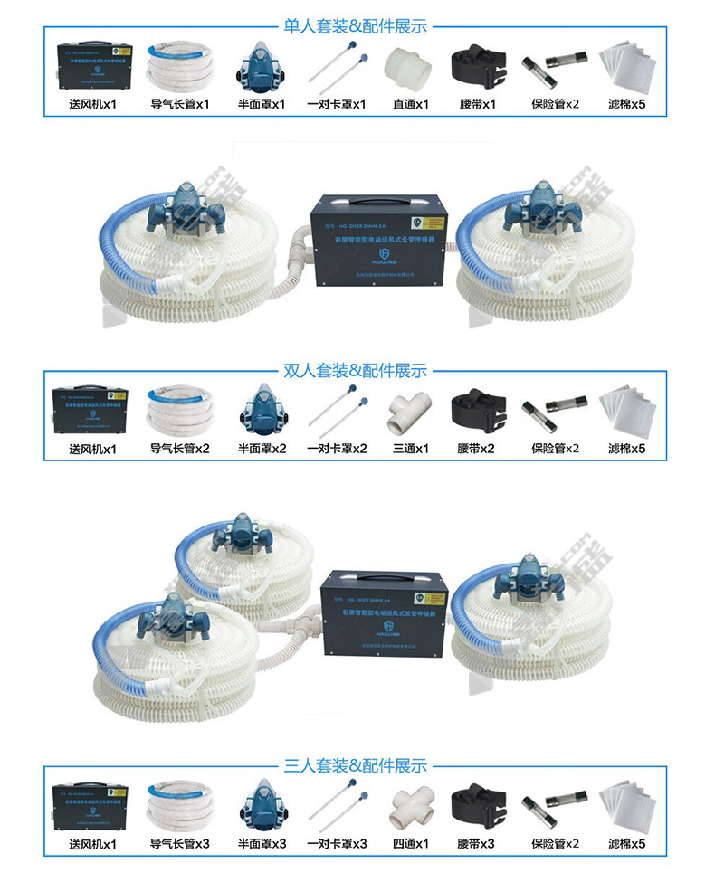 haigu color screen intelligent double half mask electric air supply long tube respirator HG-DHZK20AH6 DHZK20AH6.0A/B2 one to two blowers, one 20-meter long pipe, two full-face masks, 2 no specifications