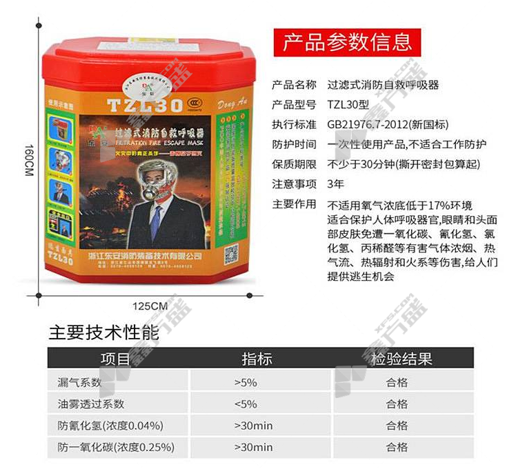 dongan filtering self-rescuing respirator TZL30 no specifications
