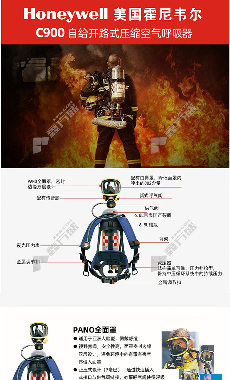 honeywell self-service compressed air respirator SCBA123K 6.8L gas bottle strap watch C850 SCBA215 no specifications