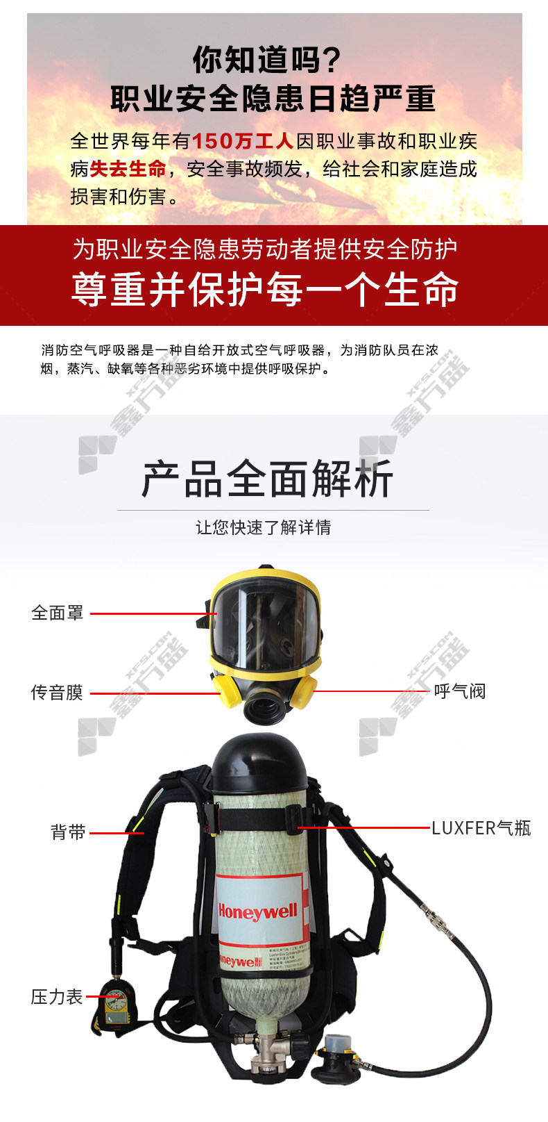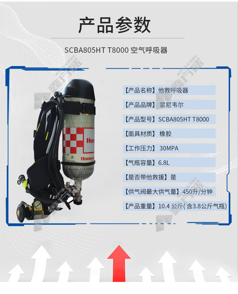 honeywell SCBA805HT T8000 he saves the respirator SCBA805M/X he saves the respirator PANO mask 6.8 L LUXFER cylinder contains pressure, head-up view, no specifications