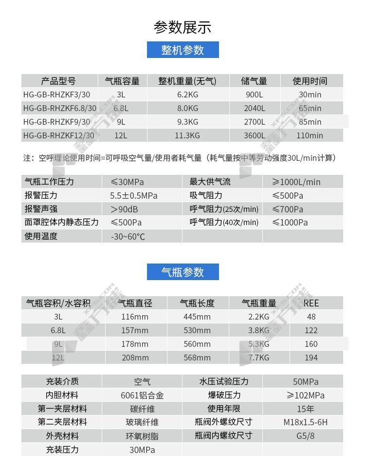 haigu GB industry conventionalset of self-contained open circuit compressed air breathing apparatus HG-RHZKF9/30/9L conventional HG-RHZKF3/30/3L conventional