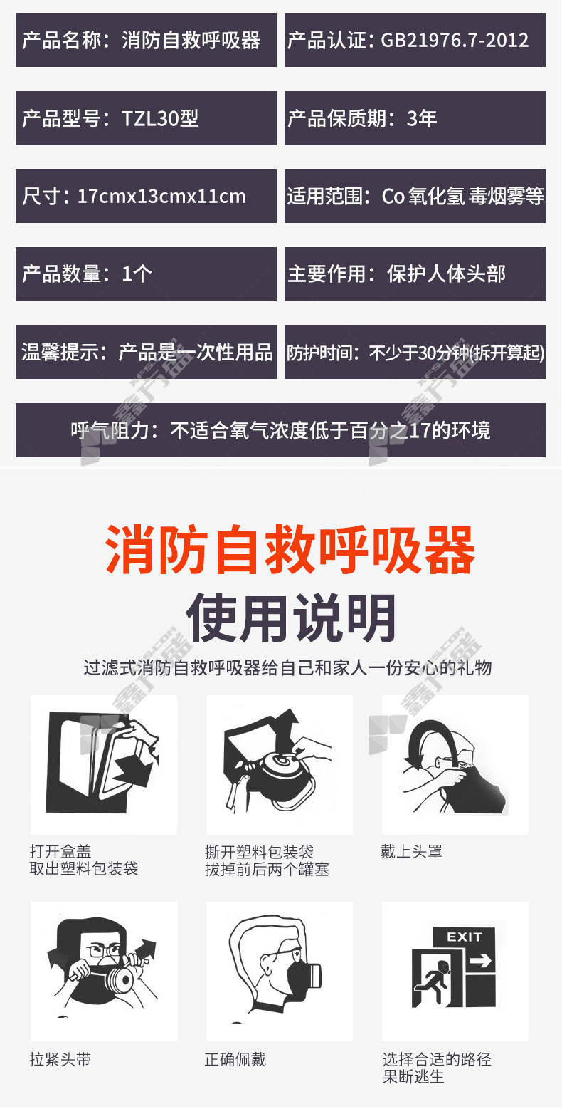 kai'an filtering fire self-rescue breathing apparatus TEL-30 no specifications for escape breathing apparatus