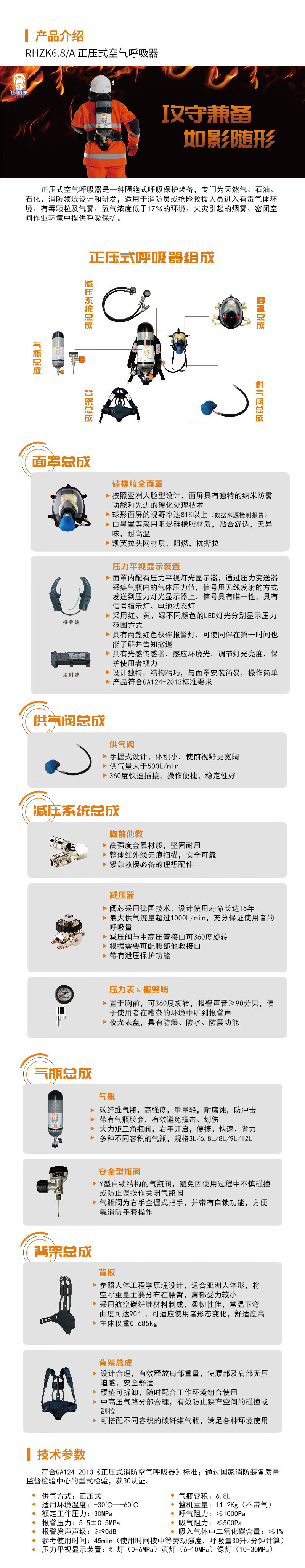 baoya RHZK6.8/A positive pressure air respirator 6.8 L positive pressure breathing apparatus (firefighting version) cylinder volume: 6.8 L ( unit: set) no specifications