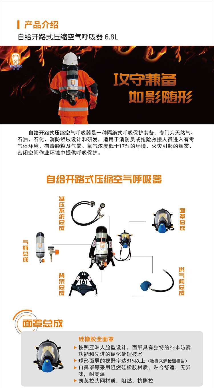 baoya X-F-20 self-contained open circuit compressed air breathing apparatus cylinder volume: 6.8 L ( unit: set) no specifications
