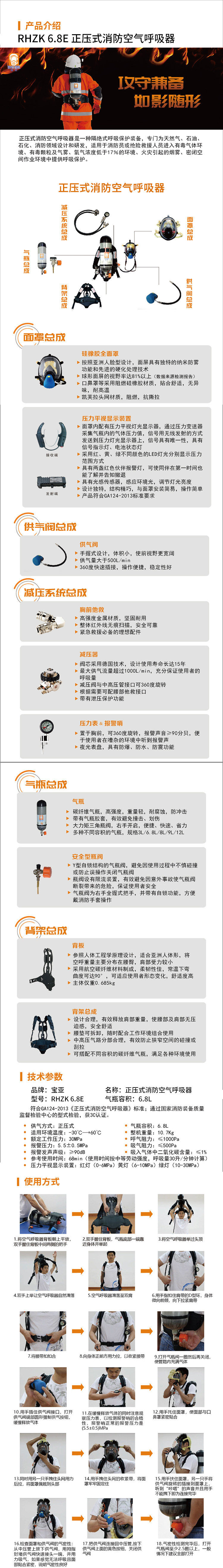 baoya safety positive pressure fire fighting air breathing apparatus RHZK 6.8E cylinder volume: 6.8 L with 3 C orange valve bottle valve (unit: set) RHZK 6.8E no specifications