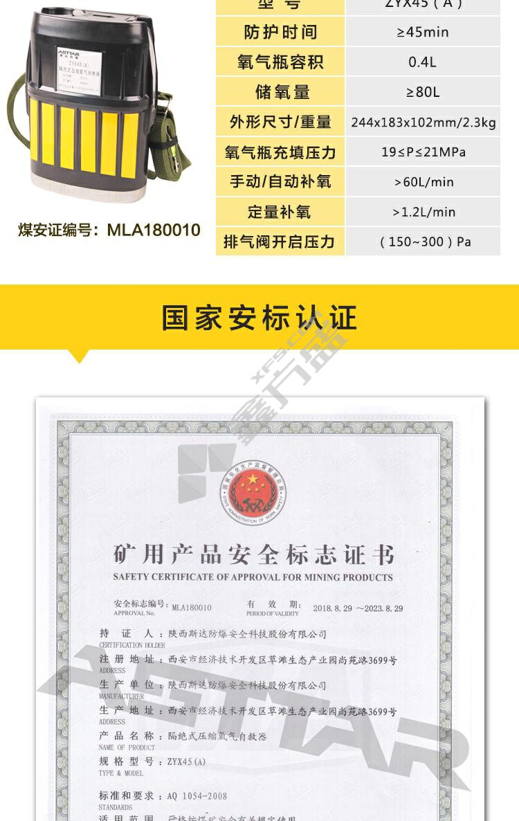 star 1 isolated compressed oxygen self-rescuer... no specifications