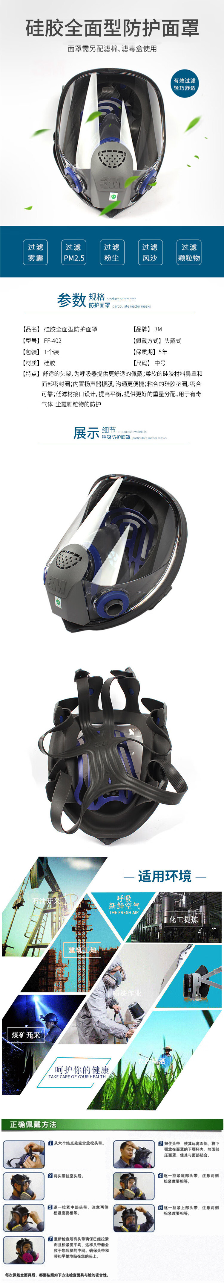 3M silicone full-face protective mask FF-402 medium size (unit: pieces) FF-402 no specifications