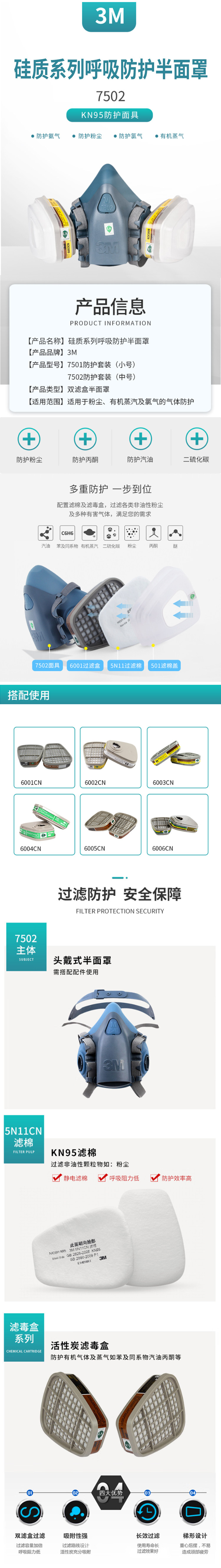 3M silicon series respiratory protection half mask double filter box half face dust toxin protective mask 7502 medium size (single mask without accessories) (unit: pieces ) no specifications