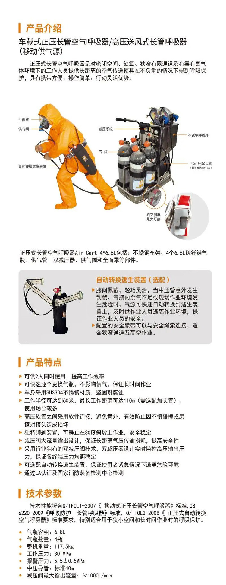 baoya RHZKF4×6.8/30 CCZ vehicle-mounted positive pressure long tube air respirator cylinder volume: 6.8 L ( unit: set) no specifications
