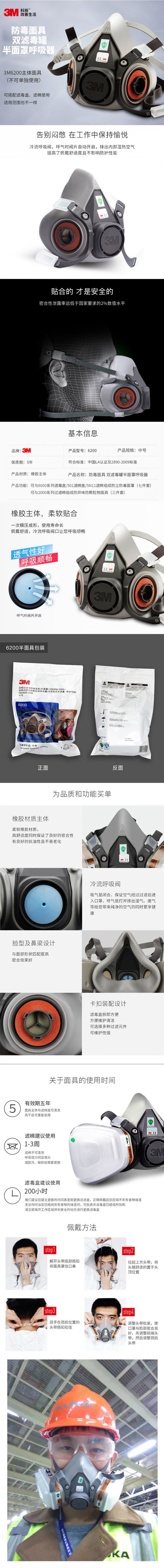3M gas mask double filter tank half mask respirator 6200 medium size 1 pack (unit: pieces) no specifications