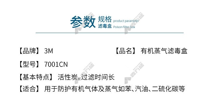 3M 7001CN organic vapor filter cartridge suitable for 7000 series without specifications