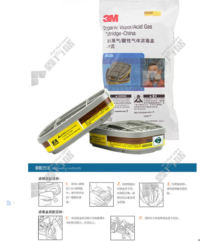 3M toxin filter box 6003 CN filter box for organic vapors and acidic gases without specifications