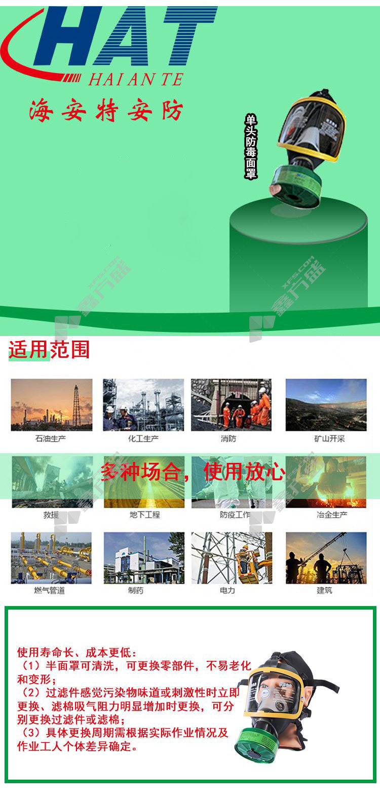 haiante gas mask with integrated tank HAT-FD filter tank has no specifications