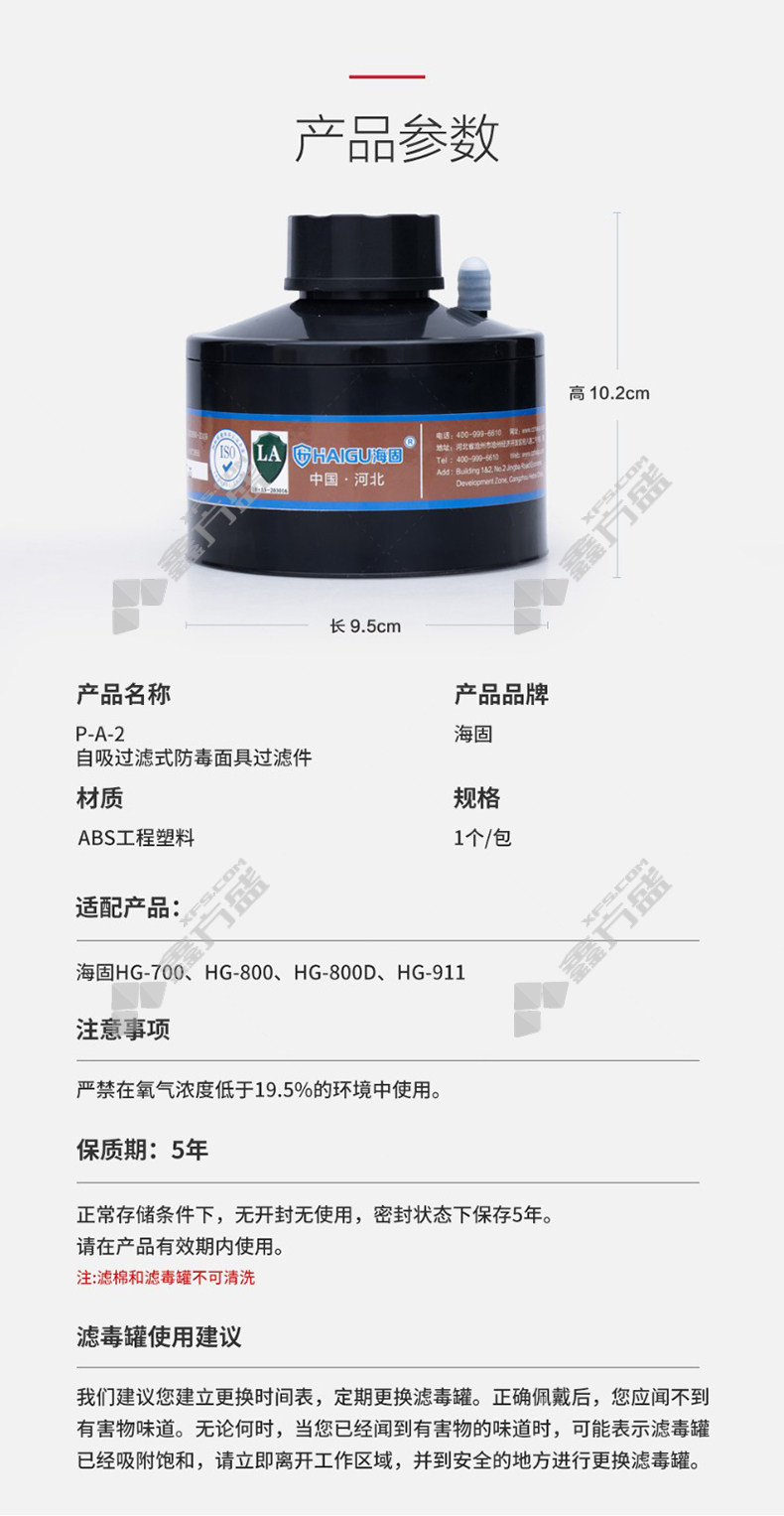 haigu A type 3 secondary canister P-A-2 there are no specifications for organic gases or vapors in the canister