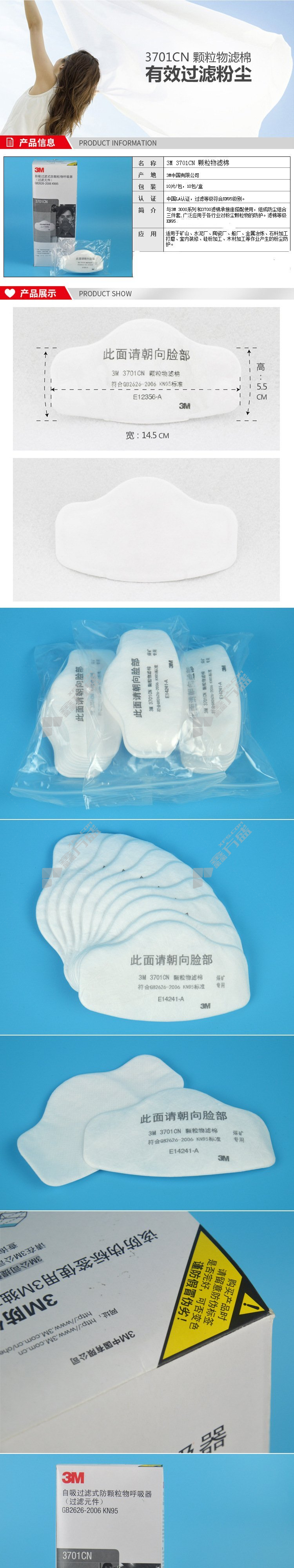 3M filter cotton 3701 CN no specifications for filter cotton