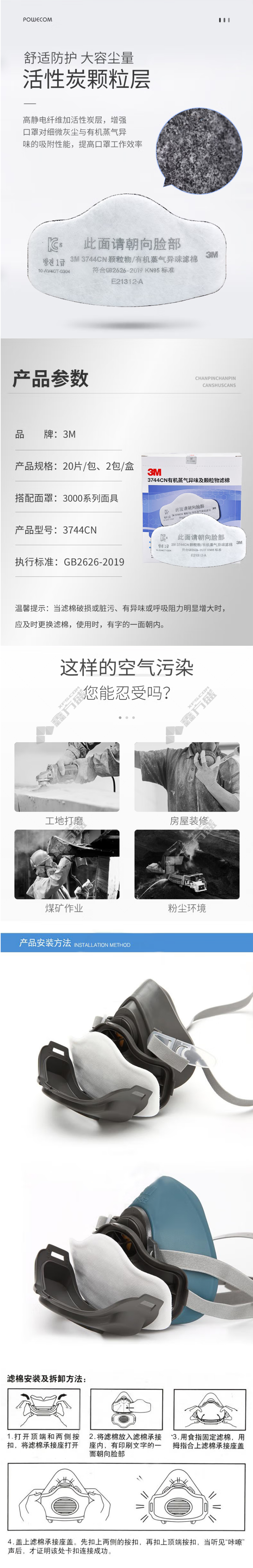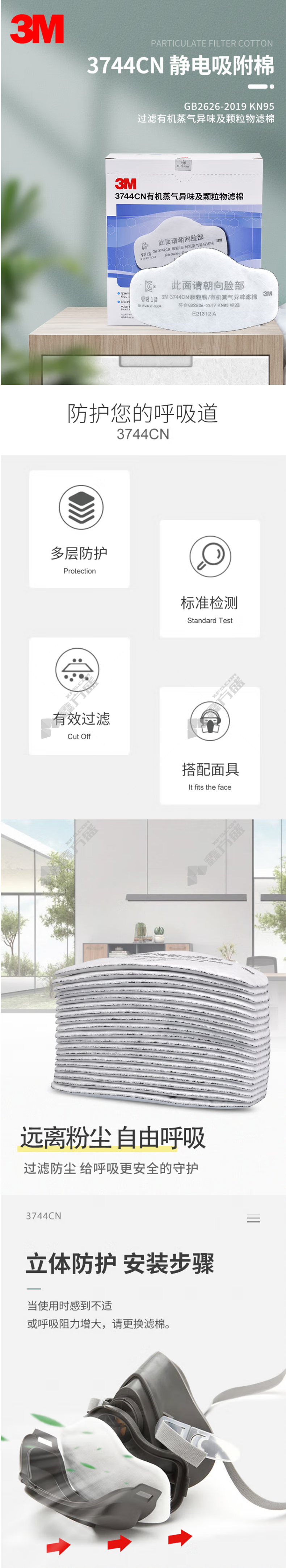 3M 3744CN organic vapor odor and particulate matter filter cotton KN95 white accessories no specifications