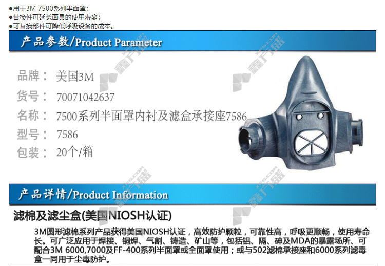 3M 7586 filter box /filter cotton socket is suitable for 7500 half mask without specifications