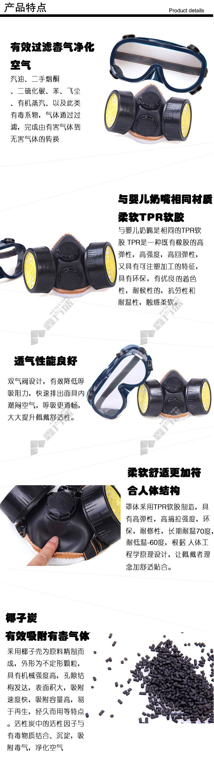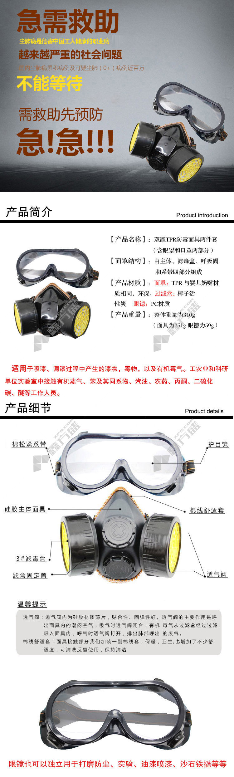 moufu protective glasses, double tank, double valve, activated carbon gas mask, two-piece set, one size fits all, no specifications