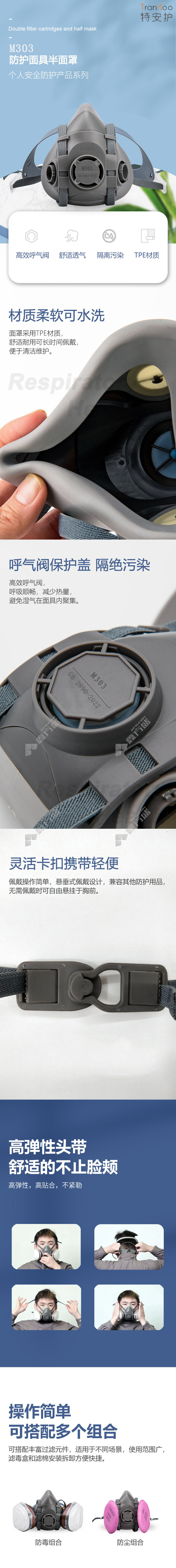 special safety double filter box half mask M303 1 indivual /bag of 20 indivual /box no specification