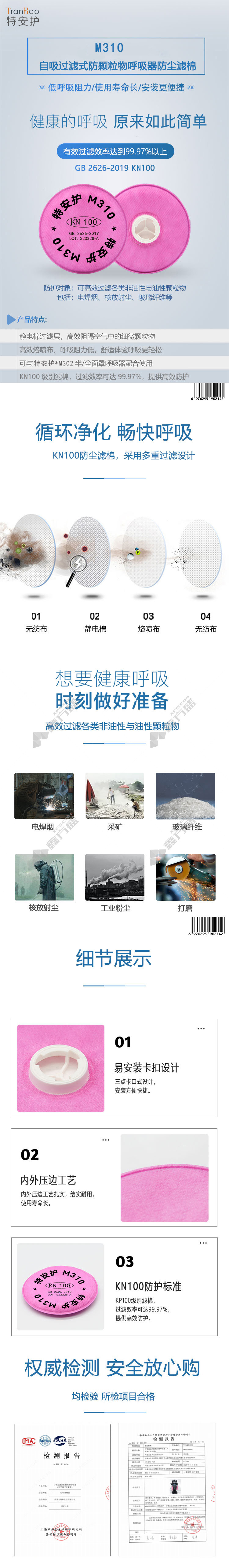 special safety filter element filter cotton M310 2 piece /pack of 100 piece /box no specification