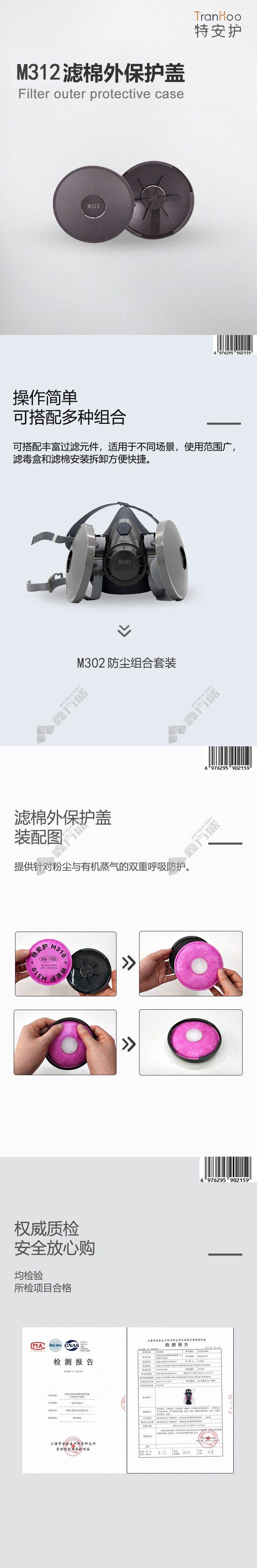 special safety double tank mask accessories filter cotton cover M312 10 indivual /bag 150 indivual /box no specification
