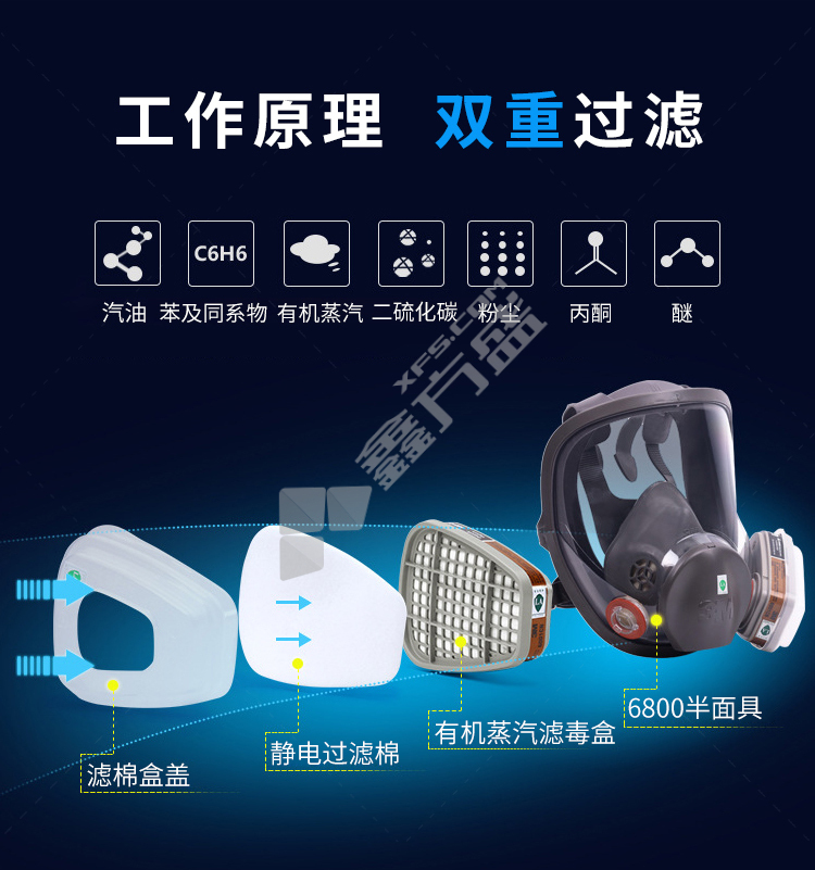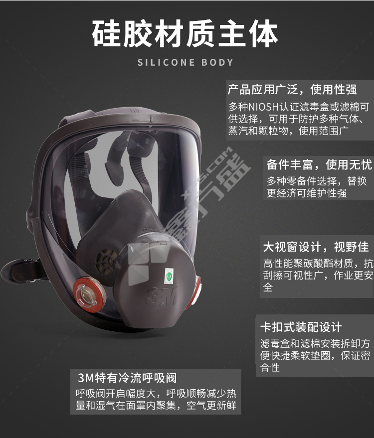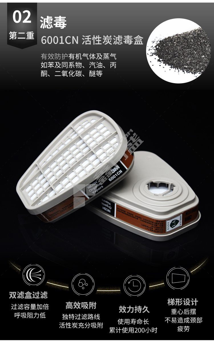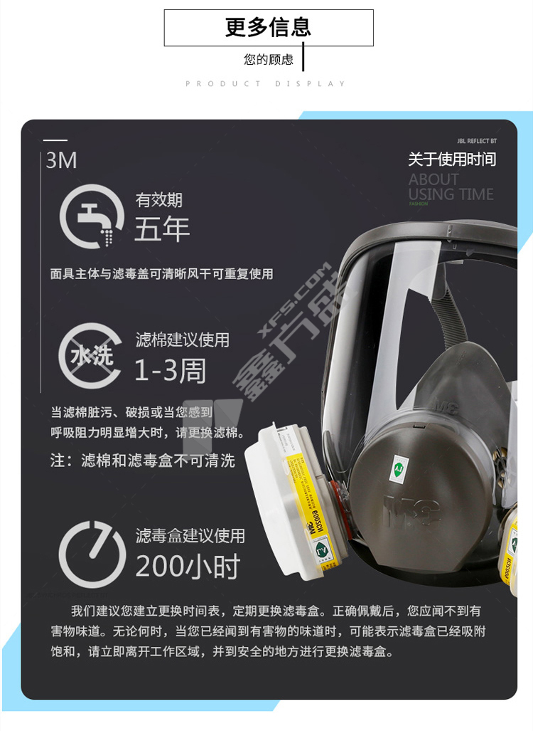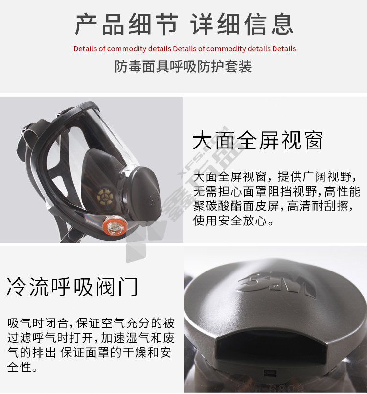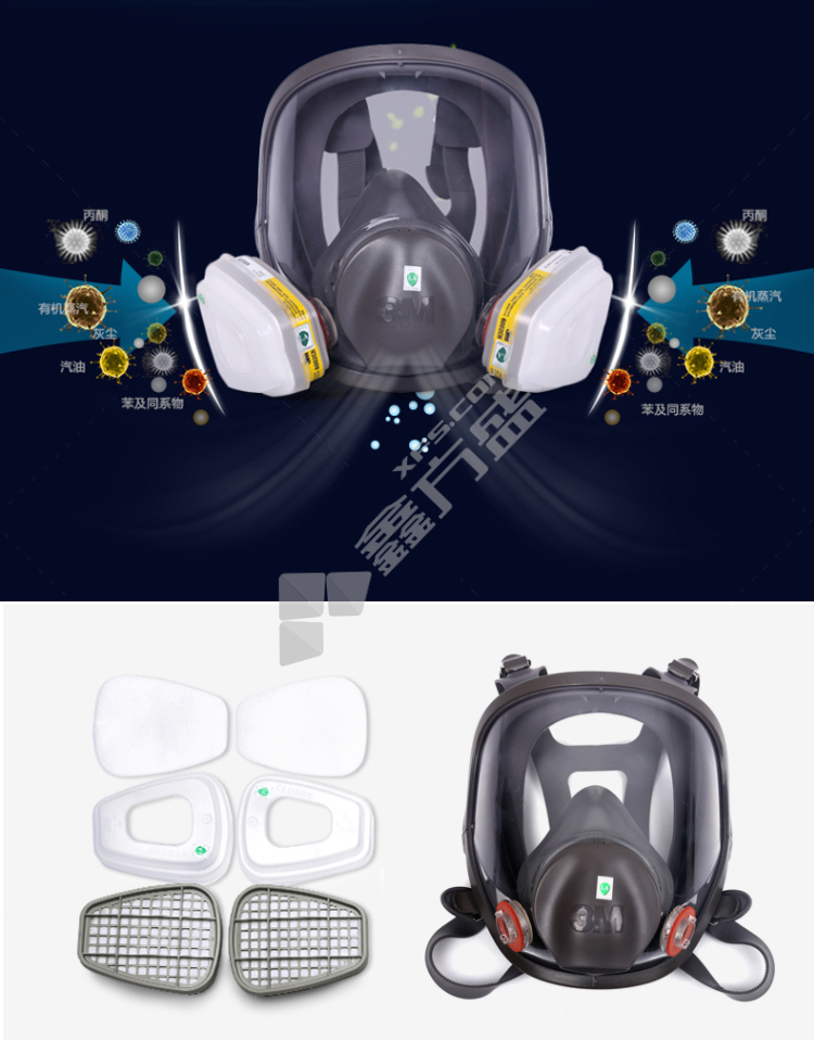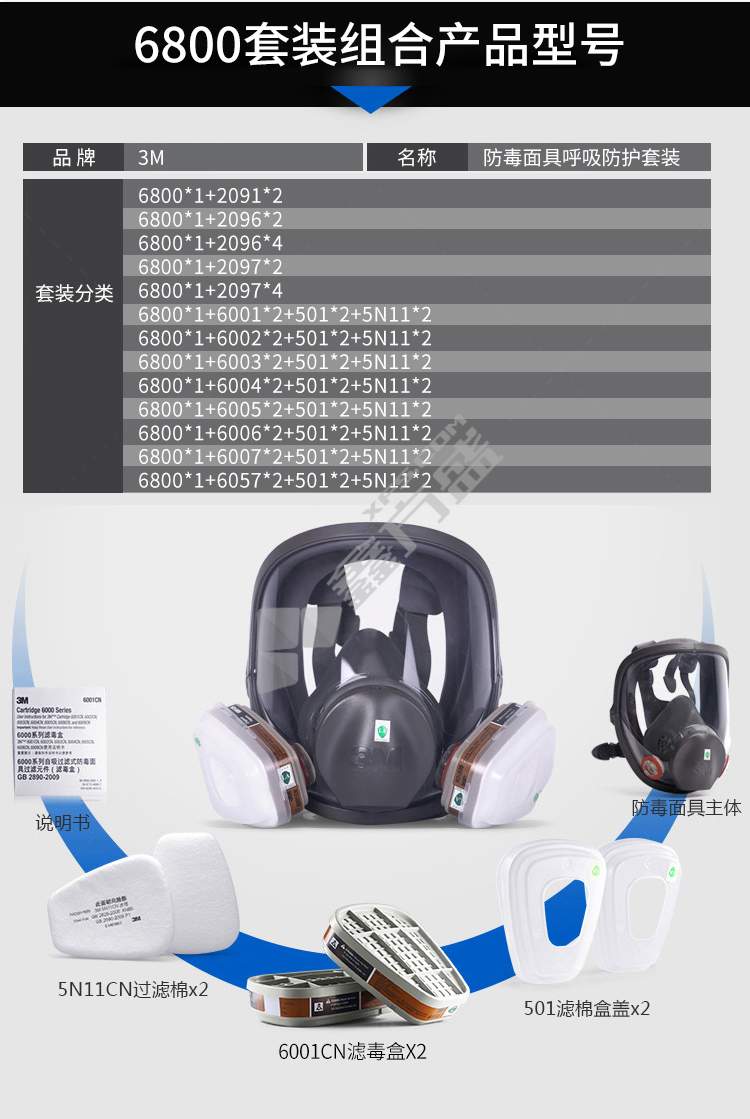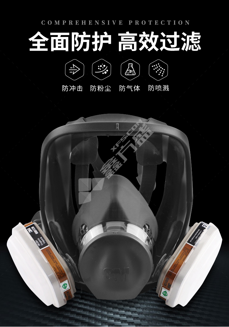 3M full protective mask 6800 medium size needs to be used with 6000 series filter box, no specifications