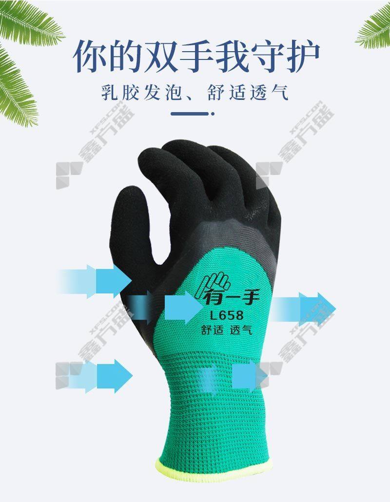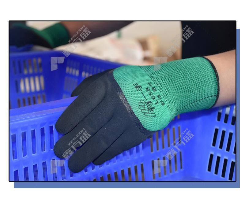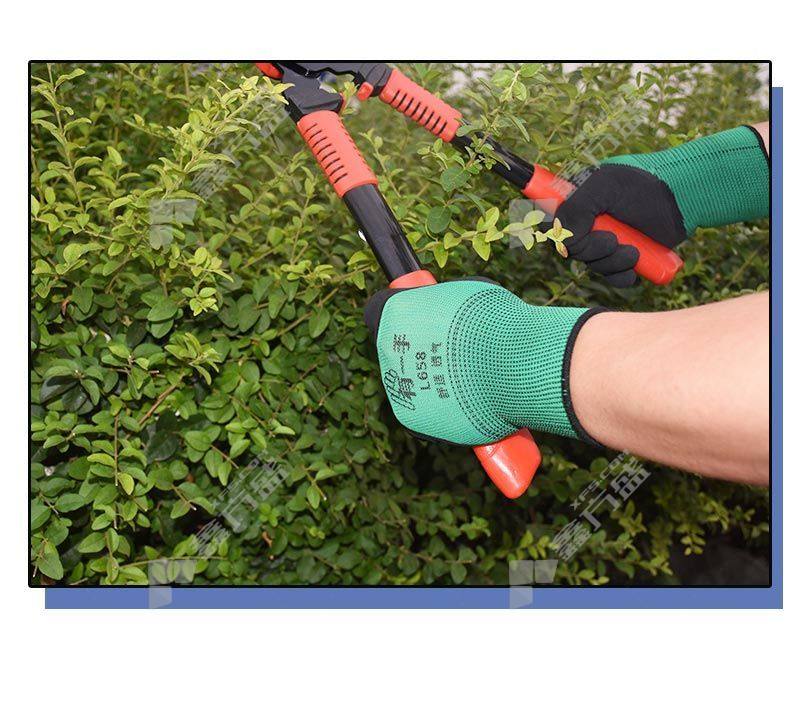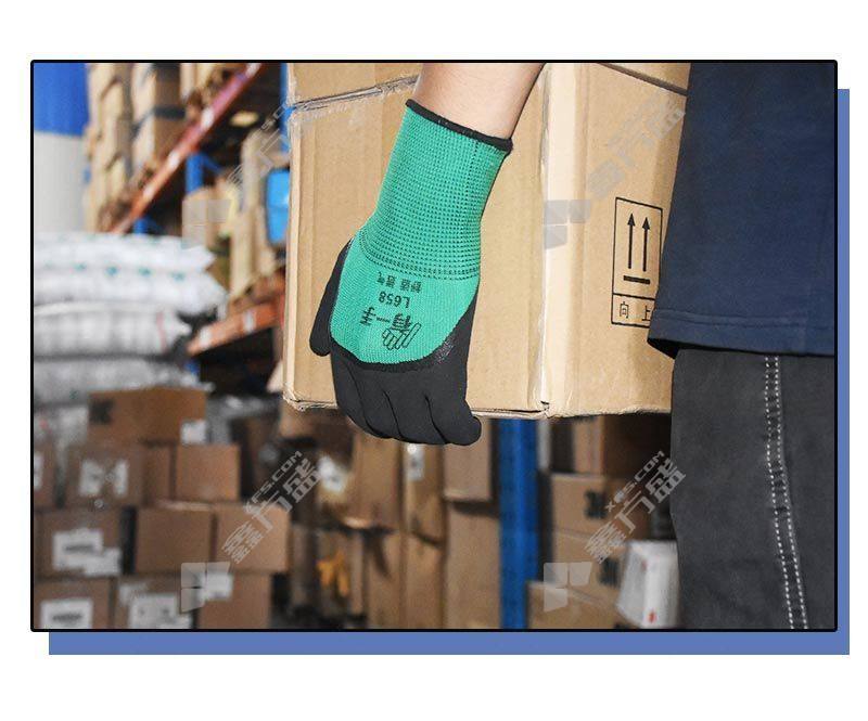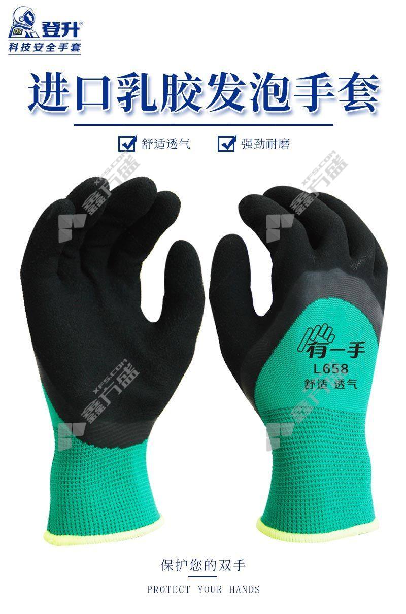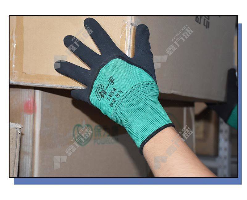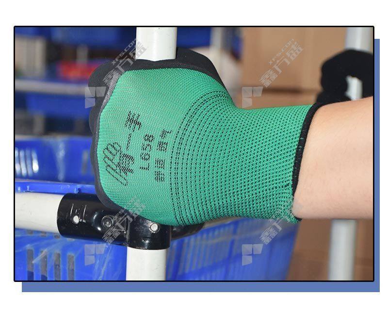 deng sheng 13 needle polyester 3 /4latex-impregnated foam gloves #658 no. 9 green gauze black rubber no specifications