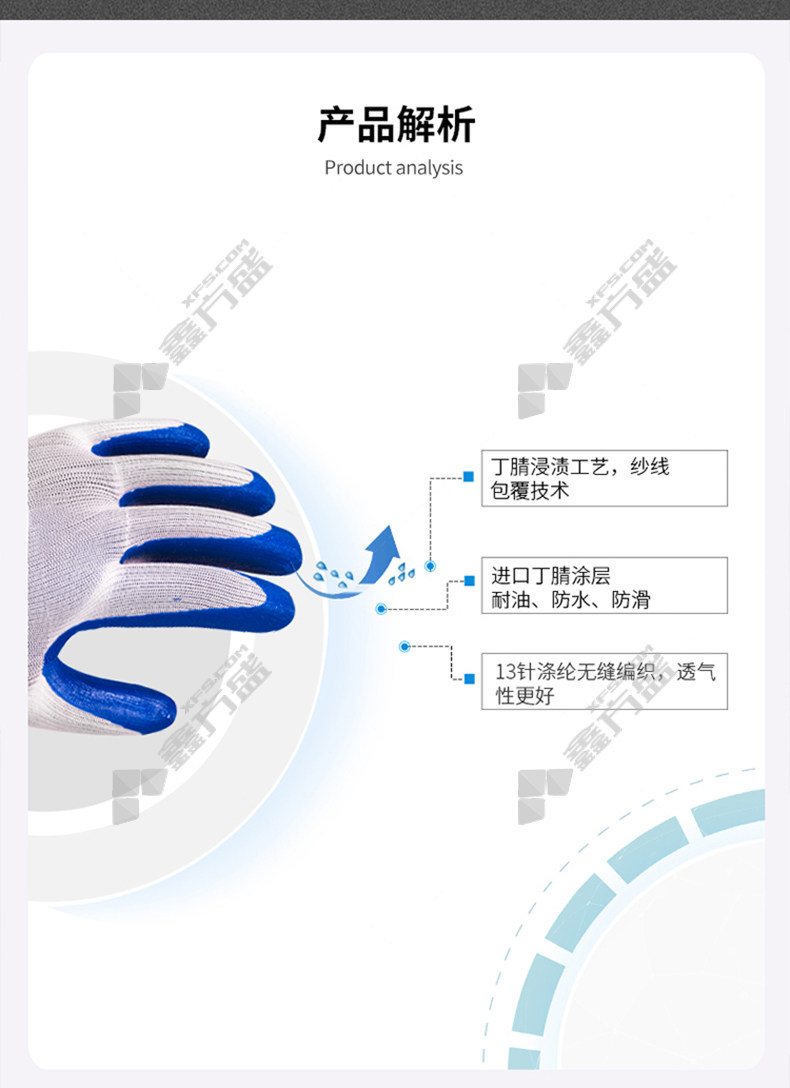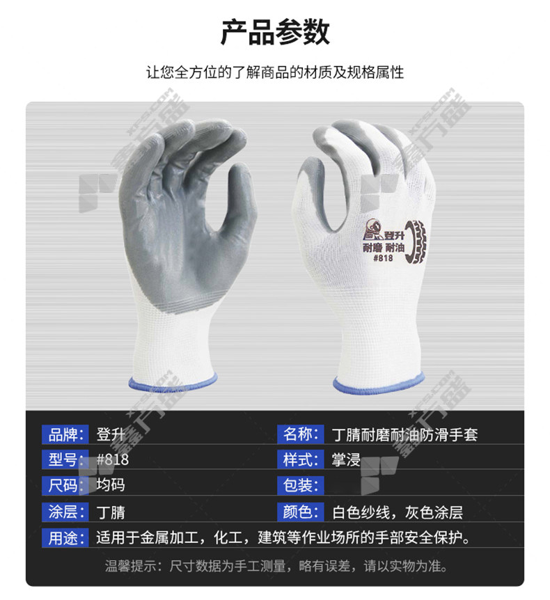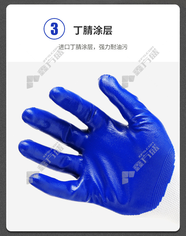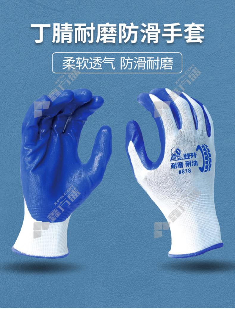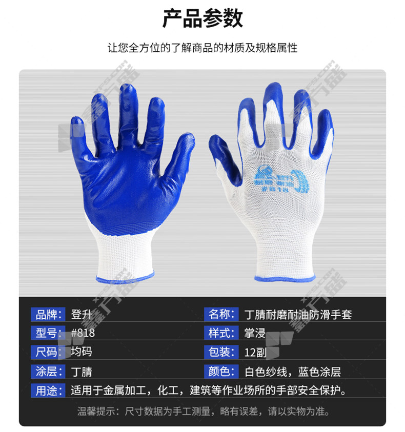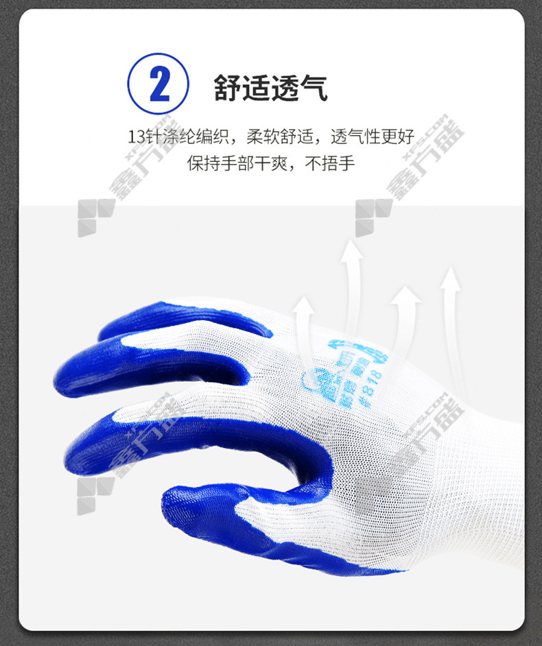 dengsheng 13-gauge polyester nitrile smooth waterproof rubber wear-resistant gloves #818 8.5number white gauze gray glue #818 /8.5number /white gauze blue glue
