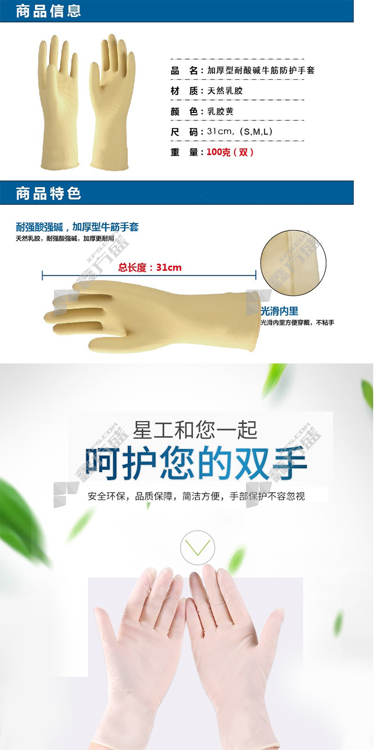 star worker XGS-R2 acid and alkali resistant and waterproof tendon latex gloves XGS-R2 M latex yellow natural latex XGS-R2/S/latex yellow /natural latex