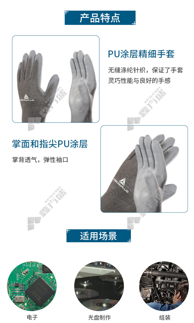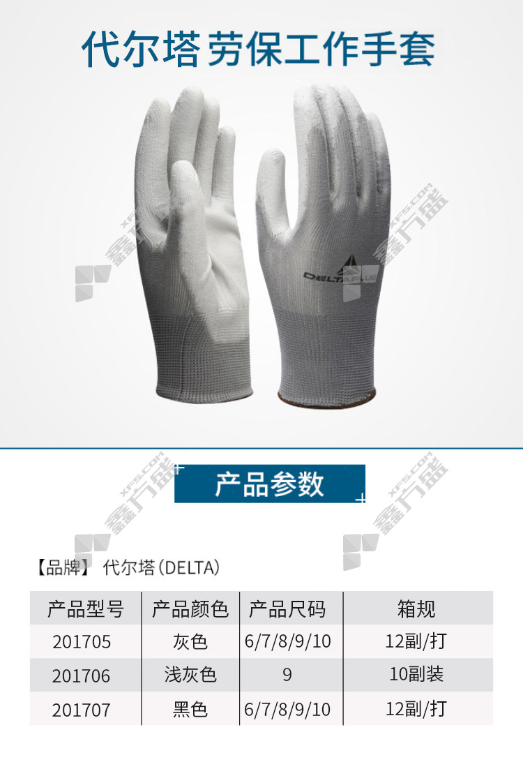 delta201706 PU coated nylon knitted glovesgrey 201706 9# grey 201706/6#/grey