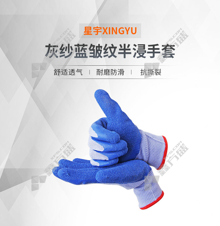 xingyu XINGYU wrinkled semi-soaked gloves L108#300 one size fits all gray gauze blue no specification