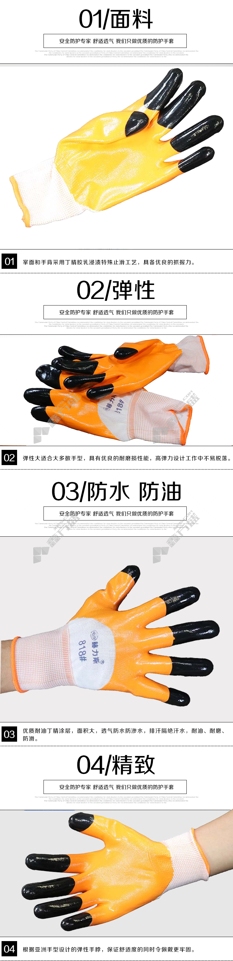 hellis wear-resistant and oil-resistant reinforced nitrile gloves 818# L white thread yellow rubber polyester nitrile no specification