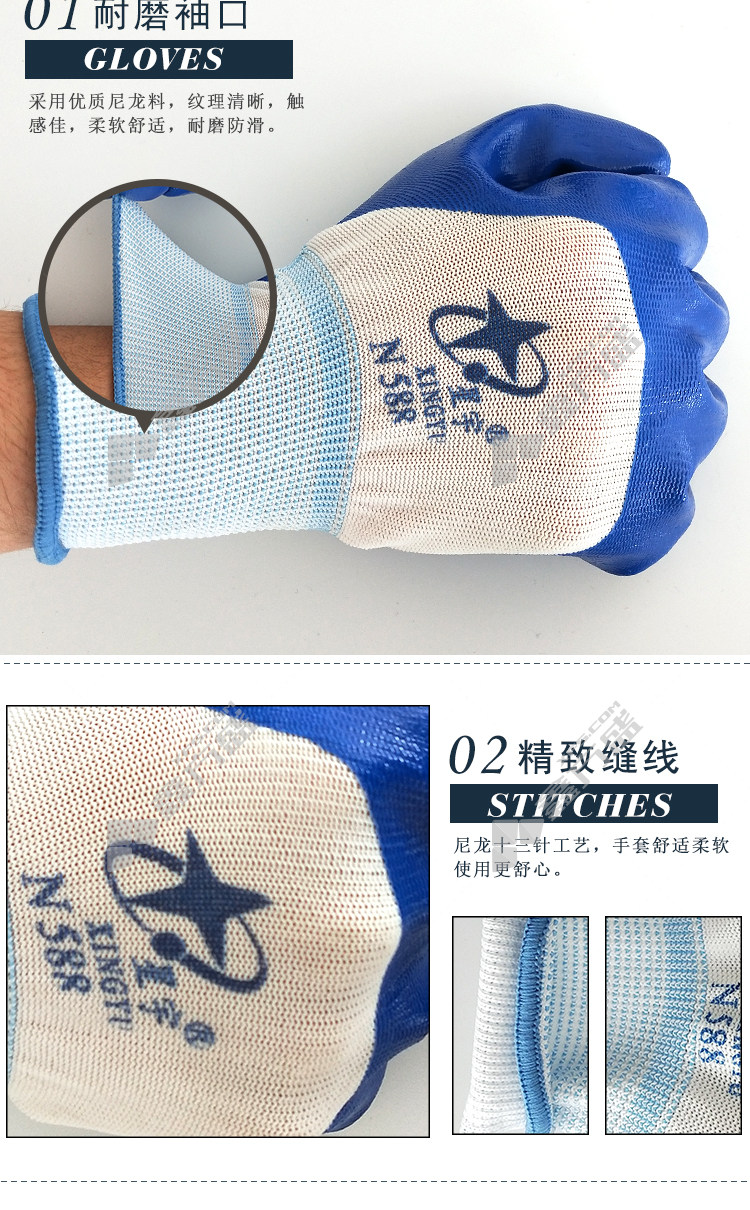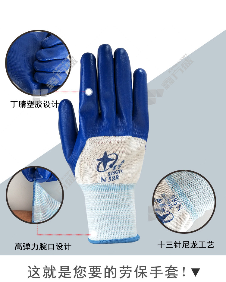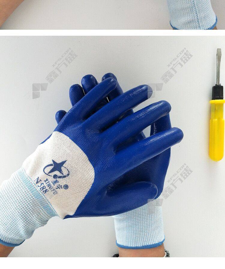 xingyu XINGYU N588 nitrile semi-soaked gloves N588 13 needle white nylon gray N588 13 needle white nylon blue